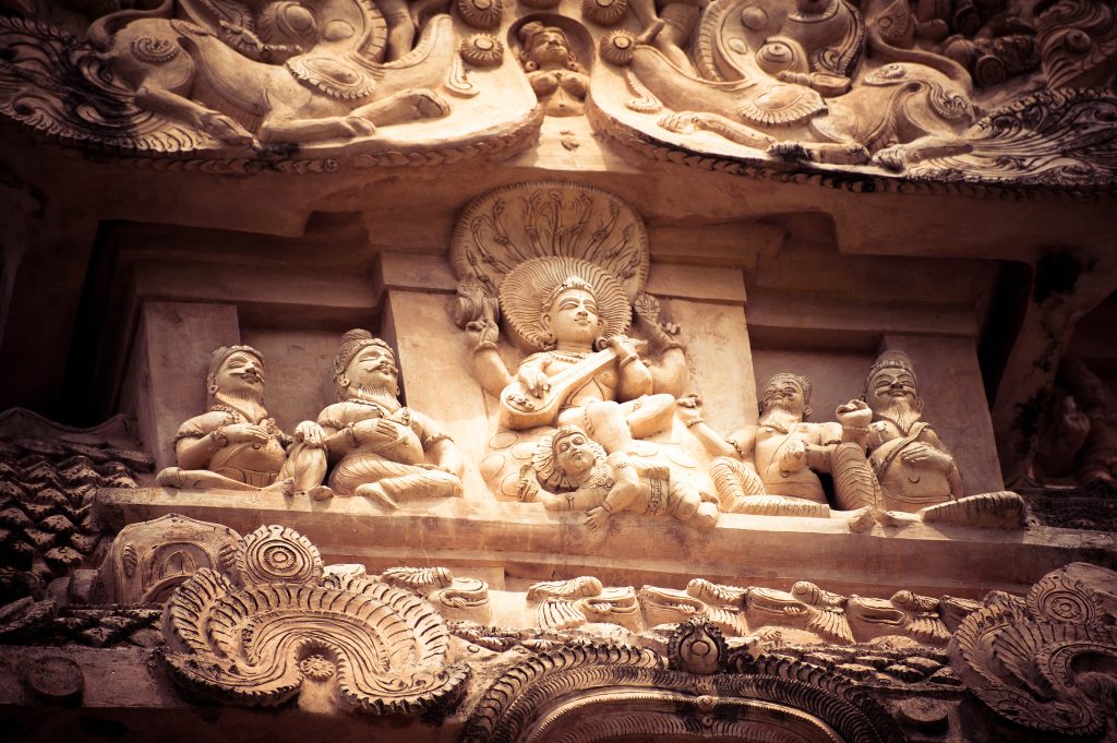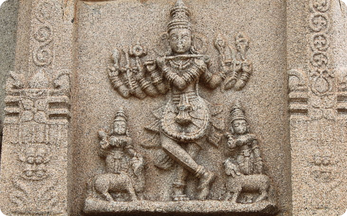 According to the legend, Shankaracharya's travels led him to the banks of the Tungabhadra river. As he sat in meditation, he saw a hare turning against a hound in a sudden downpour and is offered help by a snake, its natural predator in a remarkable display of harmony.