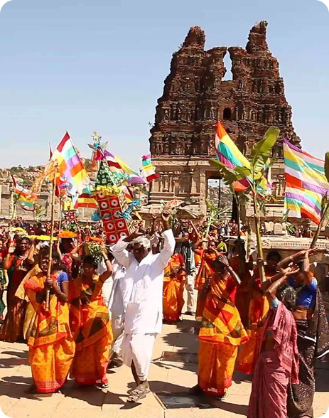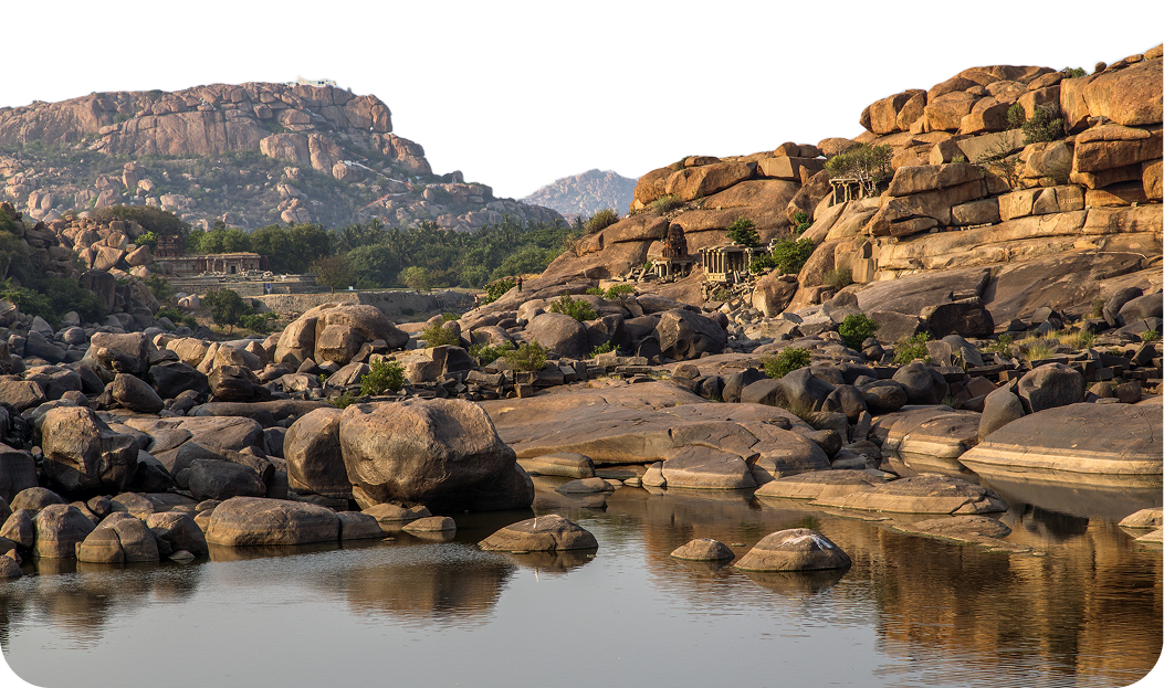 The hills and rivers of Hampi carry echoes of these legends: Anjanadri hill is revered as Hanuman's birthplace; Rishimukha hill marks Sugriva's meeting with Rama; and Malyavanta hill is remembered as the refuge of Rama during the monsoon. As Aparna Kshatra, Hampi is also regarded as a place that is as divine as the holy city of Kashi, making it not only a UNESCO World Heritage site but also a profound spiritual landscape where mythology, history, and devotion converge.